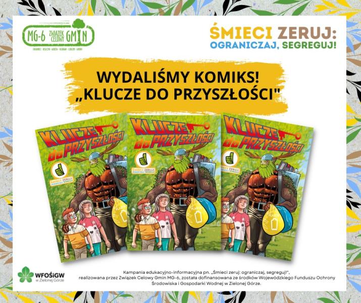Jednym z elementów kampanii był także komiks edukacyjny pn. „Klucze do przyszłości”. Publikacja opowiada historię Wartana, pradawnego obrońcy środowiska, który na terenie każdej gminy, należącej do Związku Celowego Gmin MG-6 musiał zmierzyć się z bestią, czyli problemem niewłaściwego postępowania z odpadami. Scenariusz oparty na przygodowej historii z udziałem takich postaci, jak Wartan, Laura i Kuba, pozwala na kompleksowe podejście do edukacji ekologicznej. Każda strona komiksu prezentuje różne aspekty ekologii oraz priorytetowe kwestie związane z ochroną środowiska, a także zachęca do podejmowania konkretnych działań na rzecz ekologii. Kwestia segregacji oraz konsekwencji nieodpowiedniego postępowania wobec środowiska jest tu mocno podkreślona. Wartan w sposób przekonujący i z pasją argumentuje na rzecz segregacji śmieci. Przytoczone przez niego fakty i argumenty dotyczące zagrożeń związanych z niewłaściwym postępowaniem z odpadami stają się jasne i zrozumiałe dla czytelnika. Przekonujące jest również ukazanie potworów stworzonych z odpadów, które stanowią oddziaływającą na wyobraźnię wizualizację konsekwencji naszych działań.
